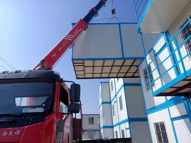 汉阳集装箱宿舍出租公司及诶少到对于集装箱房板的储存,应首先储存在干净整洁的环境中,以避免彩钢板被环境污染。各种腐蚀性介质的侵蚀性储存场所地面应平整,不含硬质材料,承载能力充足。其他部位的彩钢板应放置在橡胶垫、垫木、支架等装置上,表带锁应朝上,不得直接放置在地面或运输车辆上。彩钢板应存放在干燥通风的室内环境中,以避免露天存放和存放在易结露、温度变化的地方。此外,彩钢板的存放位置应合理安排,便于取用,尽量减少不必要的移动。